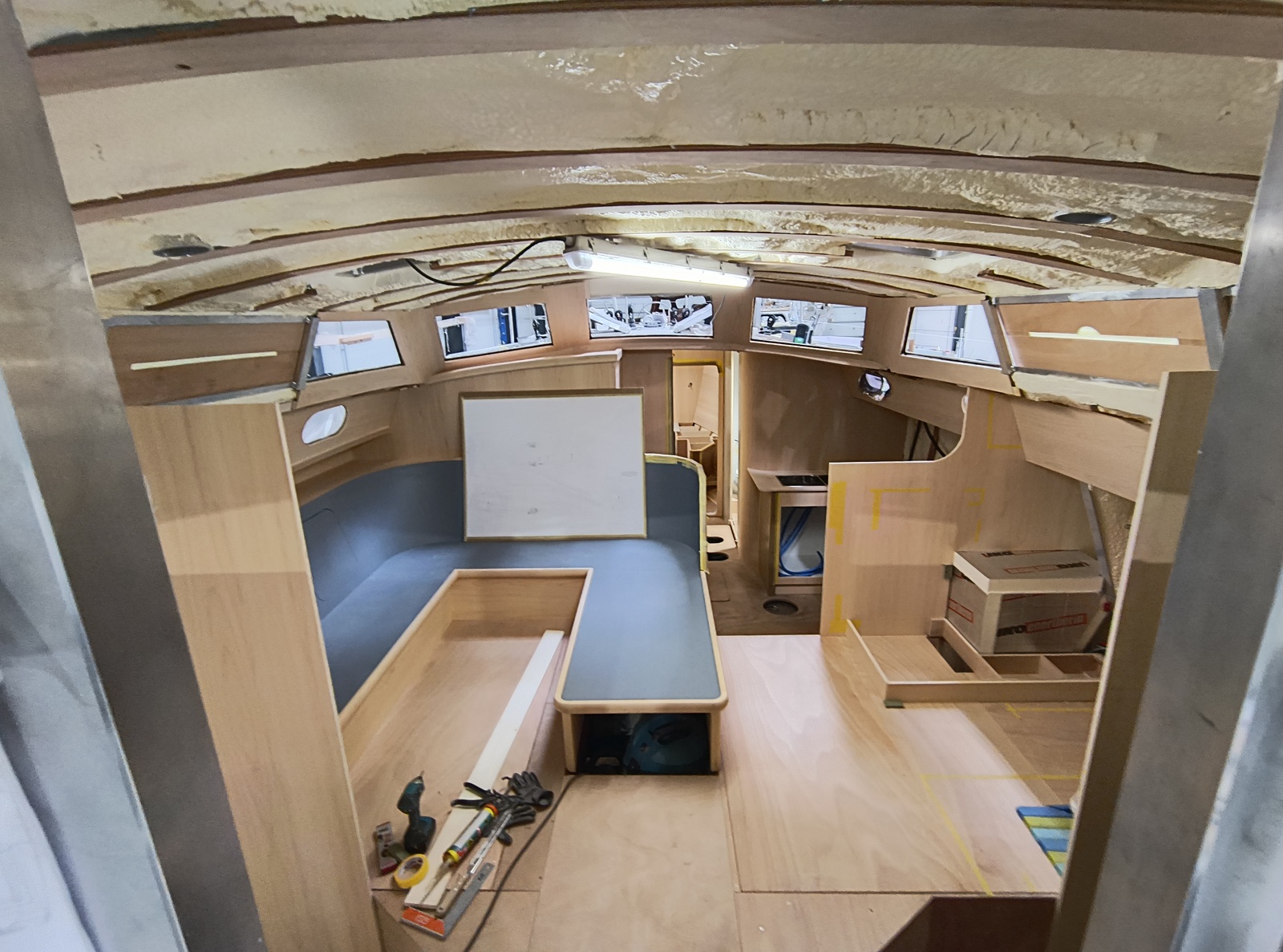 The hull is built at Paul Dijkstra Composites. She is now at Jachtwerf Loedeman and close to completion. She will be motored to the rigger wherafter the sails can be measured and made. Simultaniously Loedeman will do the last finish.