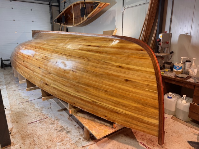 After 9 years of building this beauty in their backyard, she is now nearly ready to sail. Built from Mahogany and clincer-built.